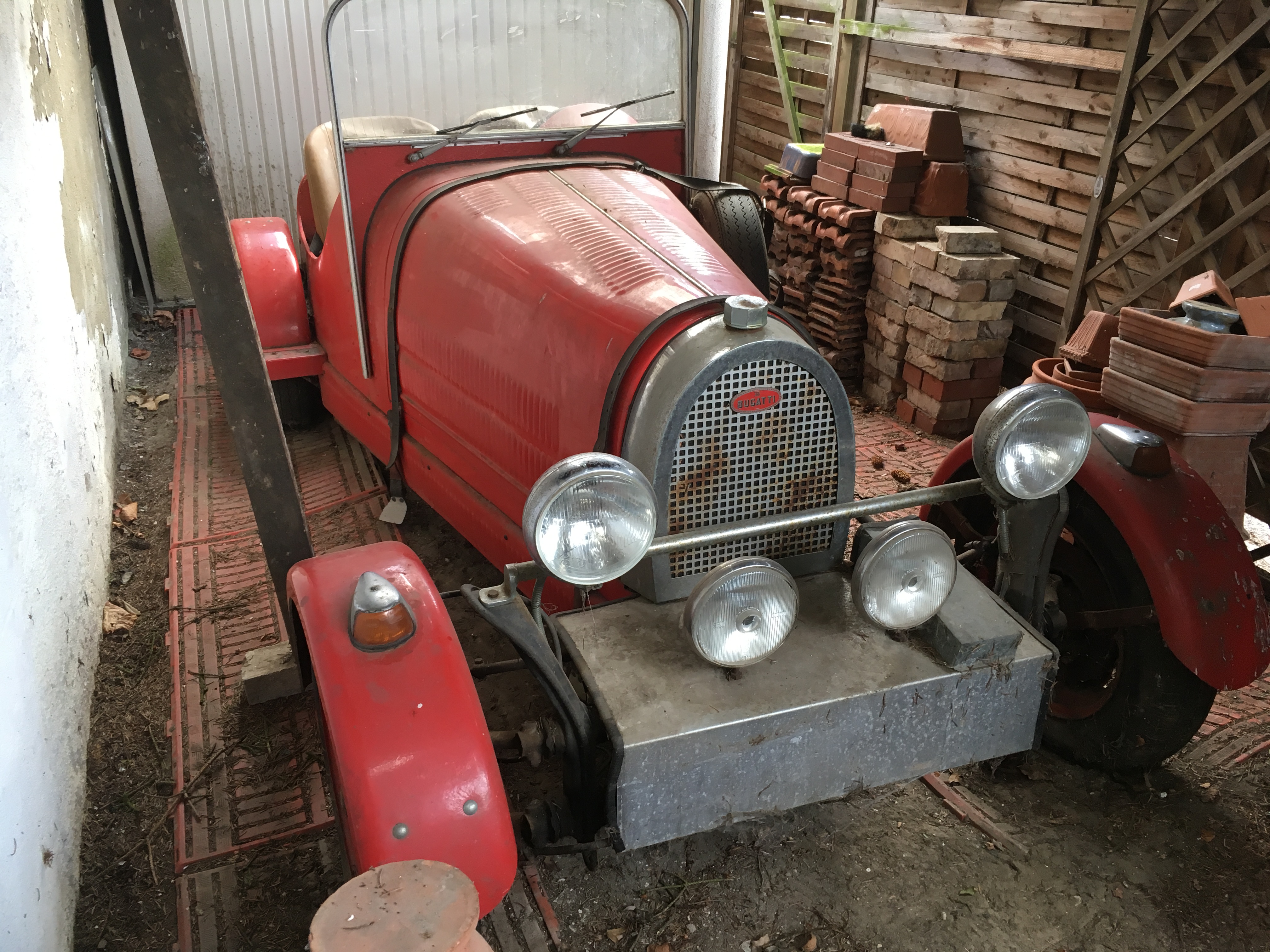 Hierbei handelt es sich um ein Fahrzeug, welches ursprünglich nicht von mir von VW-Käfer auf Bugatti umgebaut wurde. Es stand jahrelang in einer Garage, ehe ich es 2018 in einem restaurierungswürdigen Zustand erwarb.