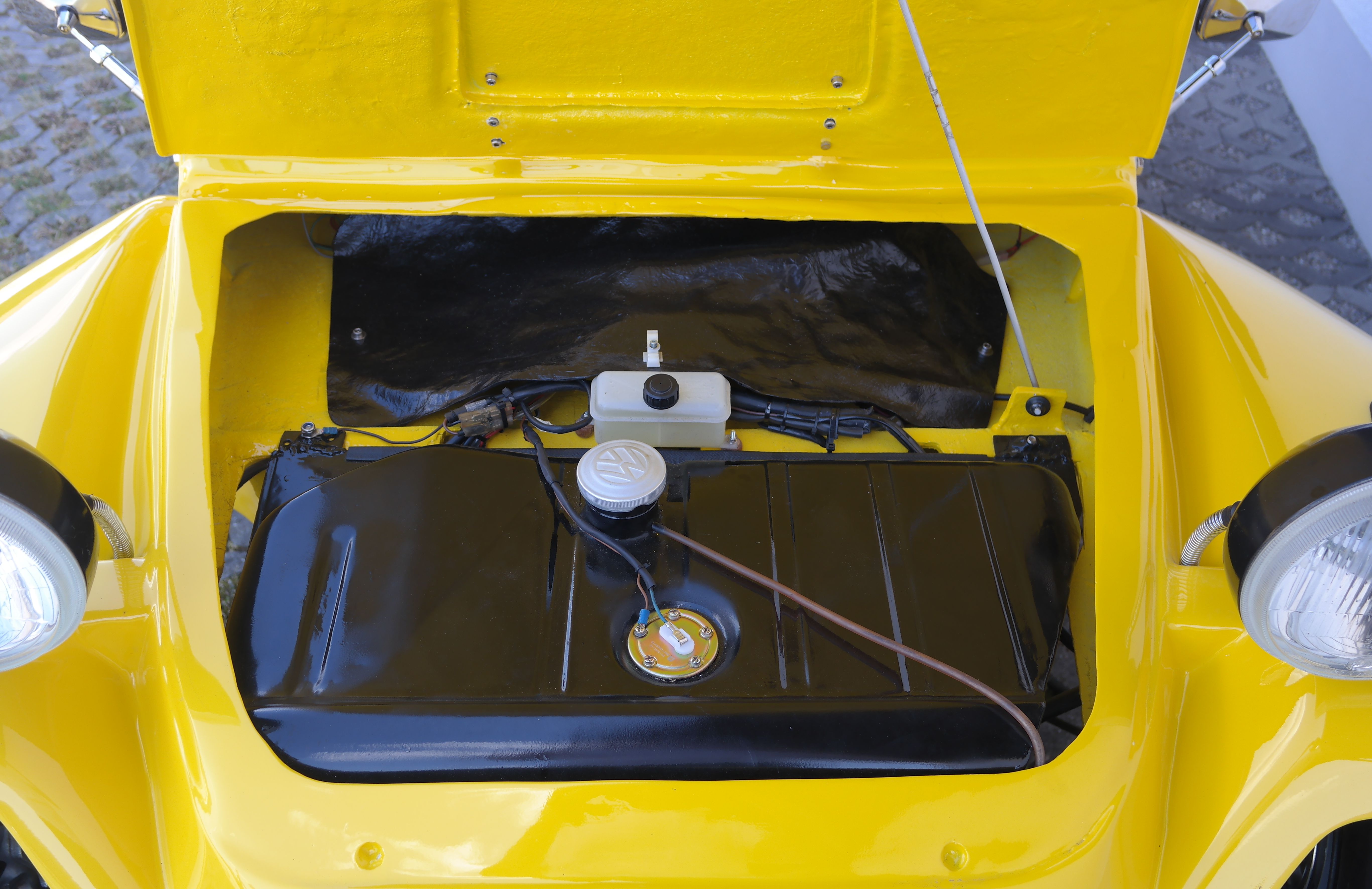 Bei der Restaurierung wurde die Fronthaube vergrößert, was zur Folge hat, dass der Tank (falls nötig) ausgebaut werden kann, ohne die Karosserie vom Chassis zu trennen. Ebenso wurde die Batterie nach hinten verlegt, sodass ein original VW-Käfer Kabelbaum, der sich millionenfach bewährt hat, verwendet werden konnte. Das Chassis wurde sandgestrahlt, konserviert und jegliche Teile wie Achse, Bremsanlage, Gummis oder Lager erneuert.