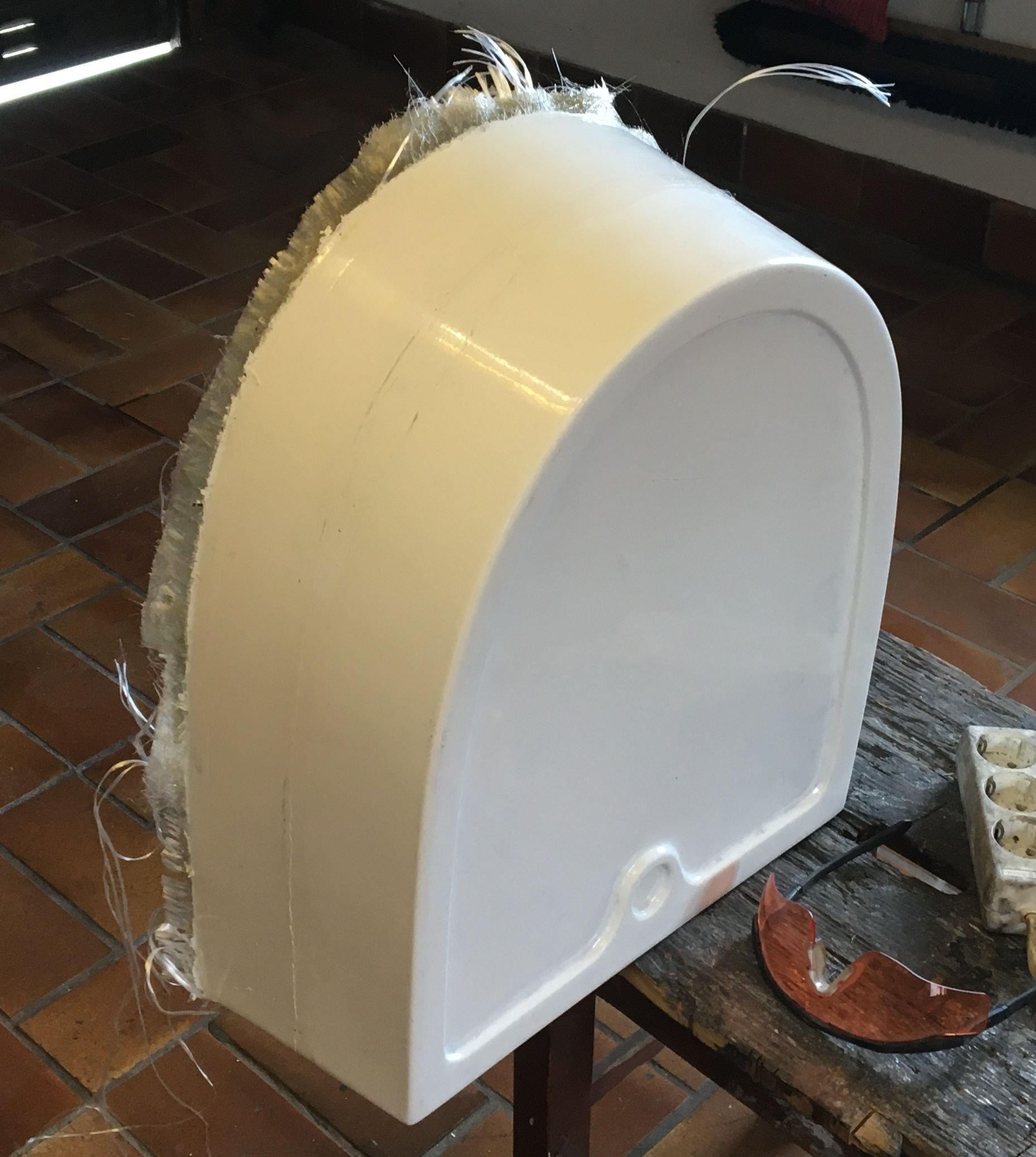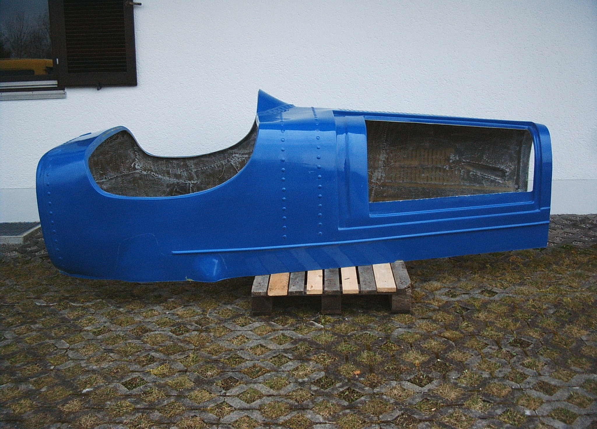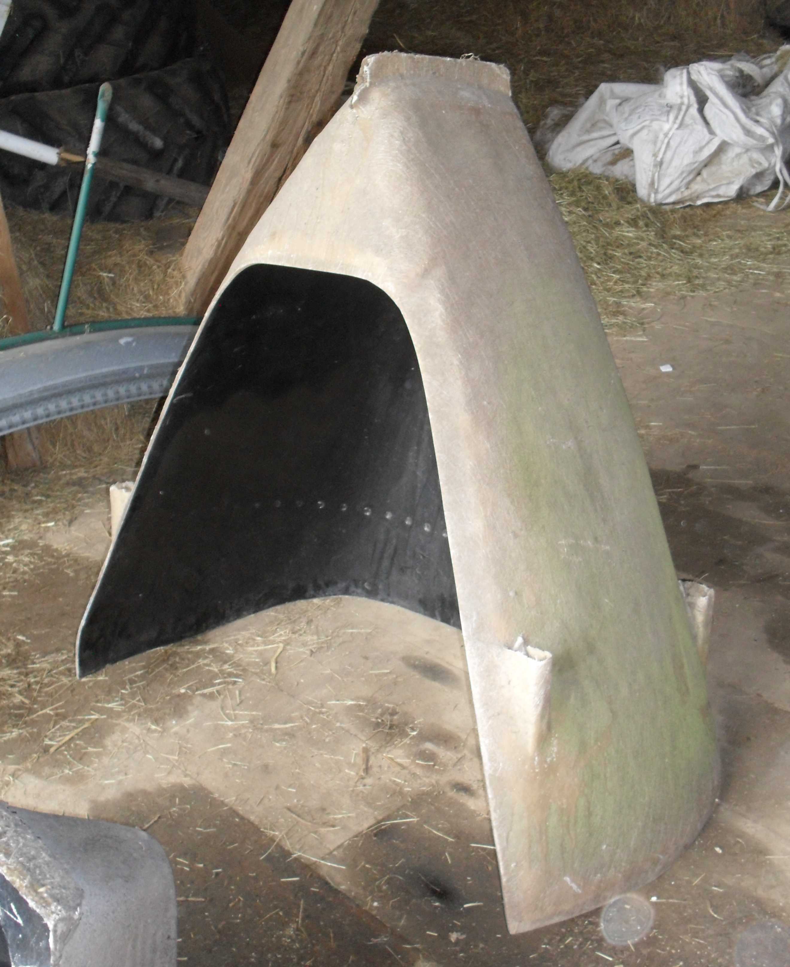 Heck - lang. Der Drehpunkt zum Kippen lag in Höhe der Hinterräder. Bei den späteren Bausätzen wurde die Karosserie in einem Teil bis hinter die Sitze gefertigt und ein kürzeres Heckteil mit Hilfe von zwei Scharnieren befestigt, was eine Erleichterung darstellte. Für beide Variationen kann ein Ersatzteil gefertigt werden. Das Foto zeigt die Form - nicht das fertige Teil. | ![]() |